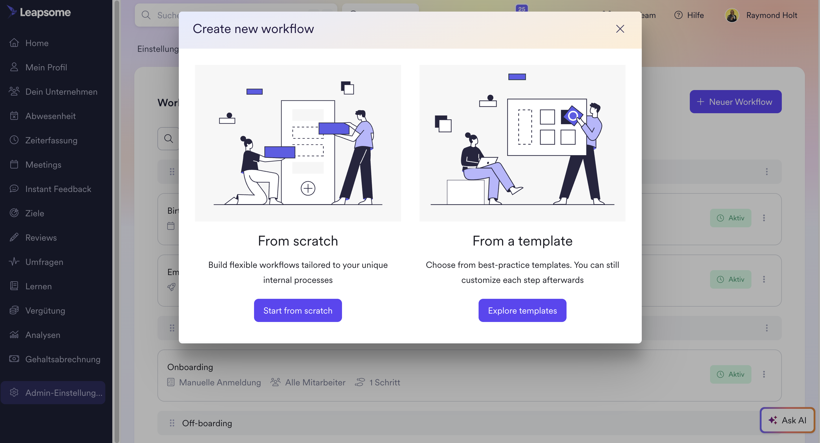 Du kannst entscheiden, ob du den Workflow von Grund auf neu erstellen oder eine der Best-Practice-Vorlagen verwenden möchtest, die ebenfalls anpassbar sind.