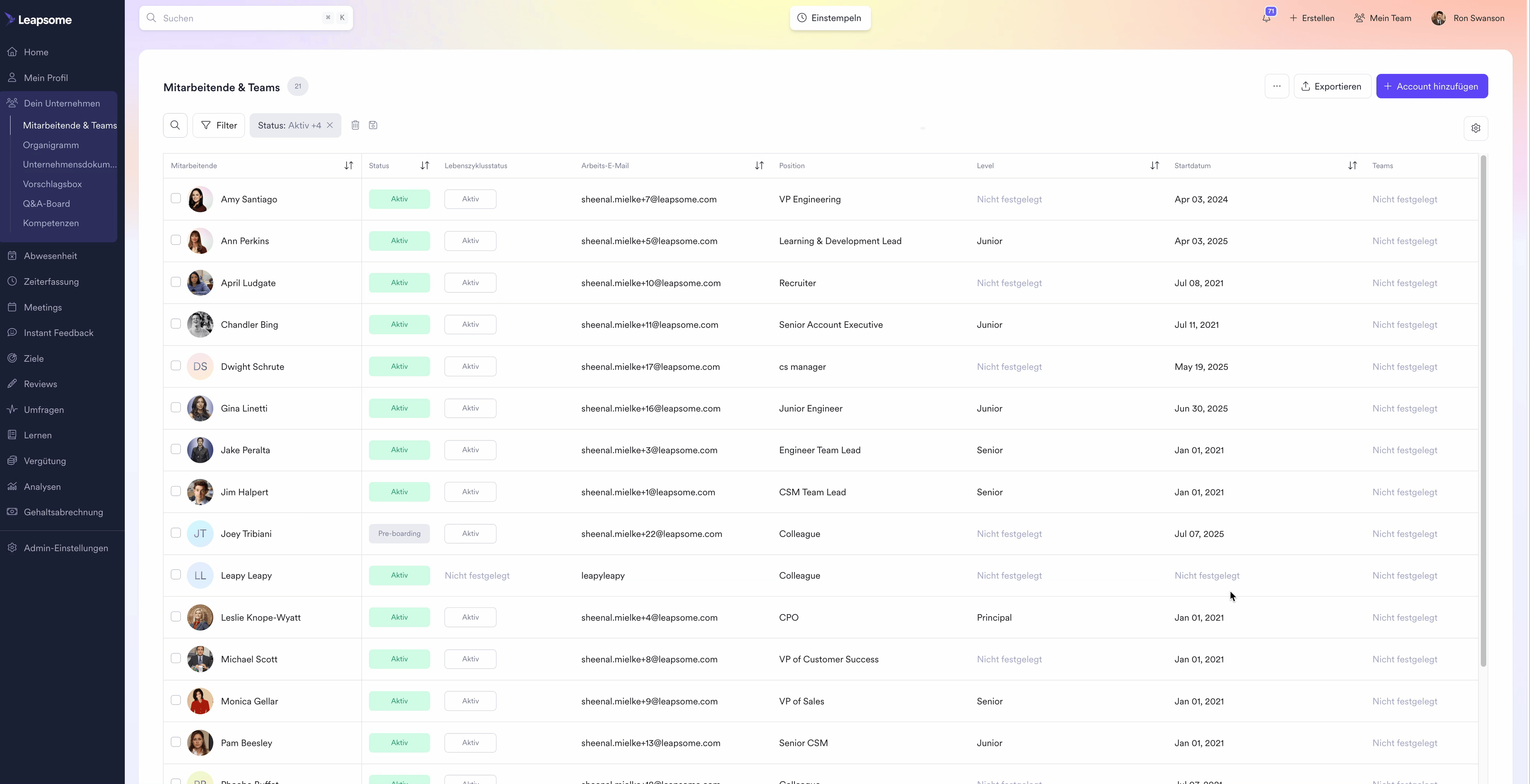 - Gehe zu 'Unternehmen' > 'Mitarbeiter'
