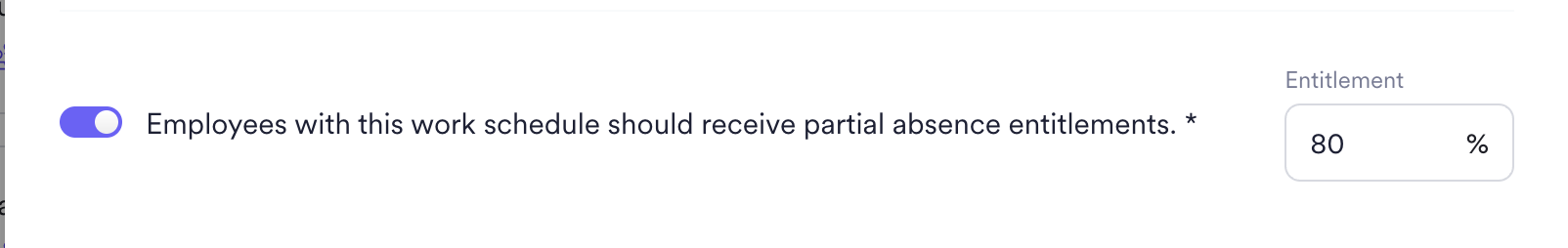 - Answer: You can work with a single absence policy and assign the new work schedule during the year (beginning of April in this example). The entitlement will then be correctly prorated for each portion of the year (100% * 25 * 3 / 12) + (80% * 25 * 9/12 ). It is important to note that within the work schedule settings, you should enable the percentage of proration of absences.