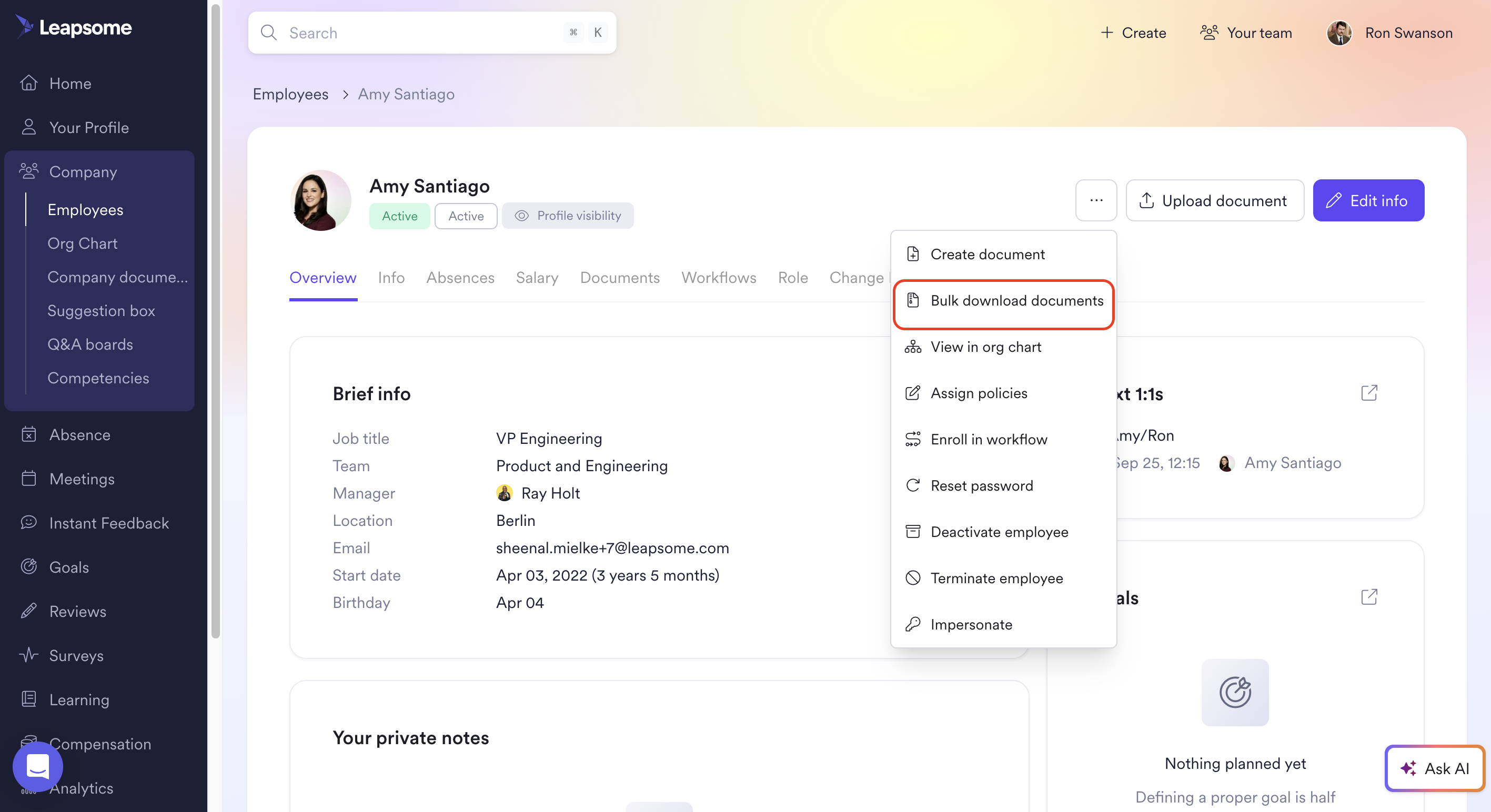 Navigate to your document category in Leapsome where you want to download multiple documents.