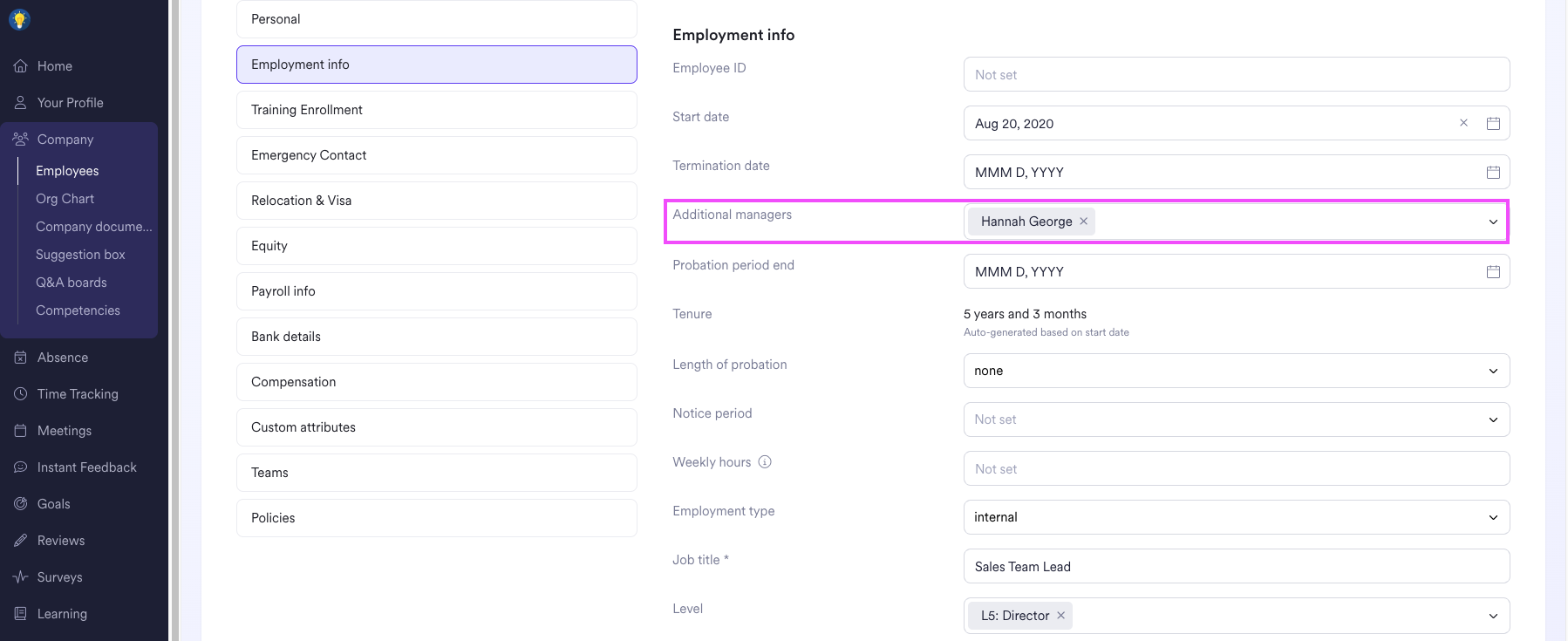 As an admin, you can add additional managers to the 'Employees' list by clicking on 'Edit' next to a user's name, then 'Employment info' > 'Additional managers'. You can also use the CSV / Excel Upload to import additional managers in bulk to users.